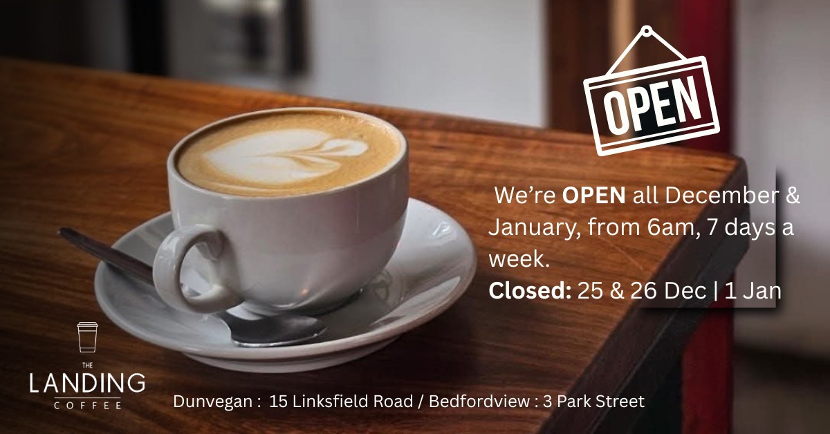 Both locations are open throughout December and January 2026 except for 24th 25th Dec and 1st January. We are open 7 days a week from 6am.
